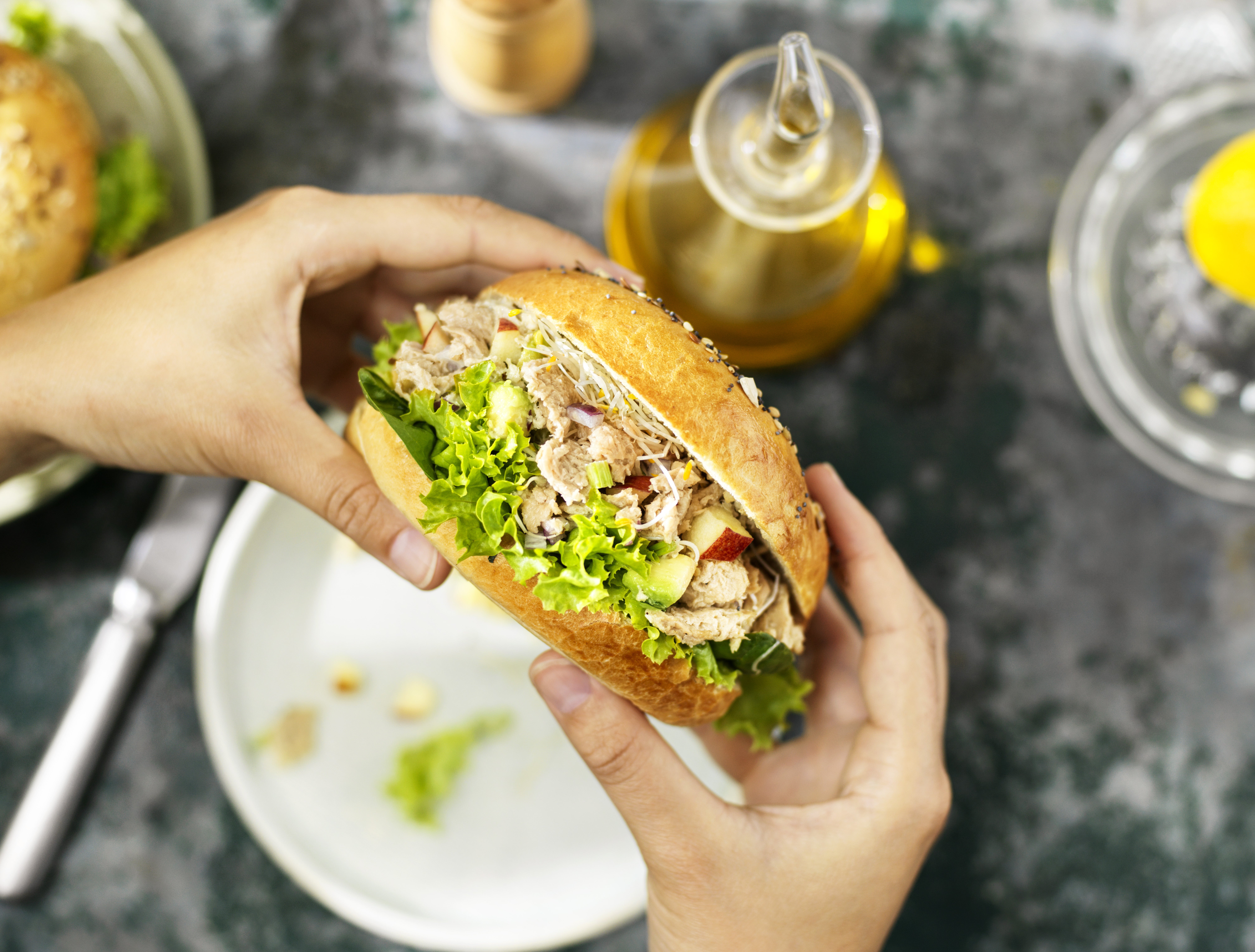 Prova questo fantastico bagel ripieno di verdura e farcito con il nuovo Garden Gourmet Vuna che è completamente a base vegetale! Semplicemente delizioso!